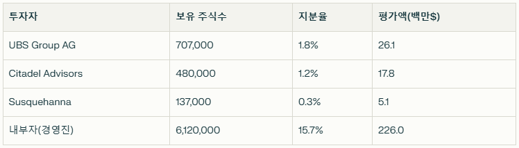 5. 주요 기관 투자자 현황 (2025.06 기준)